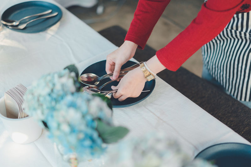 تنسيق الطاولة لتناول الطعام في المنزل مع أفراد العائلة أو للضيوف.