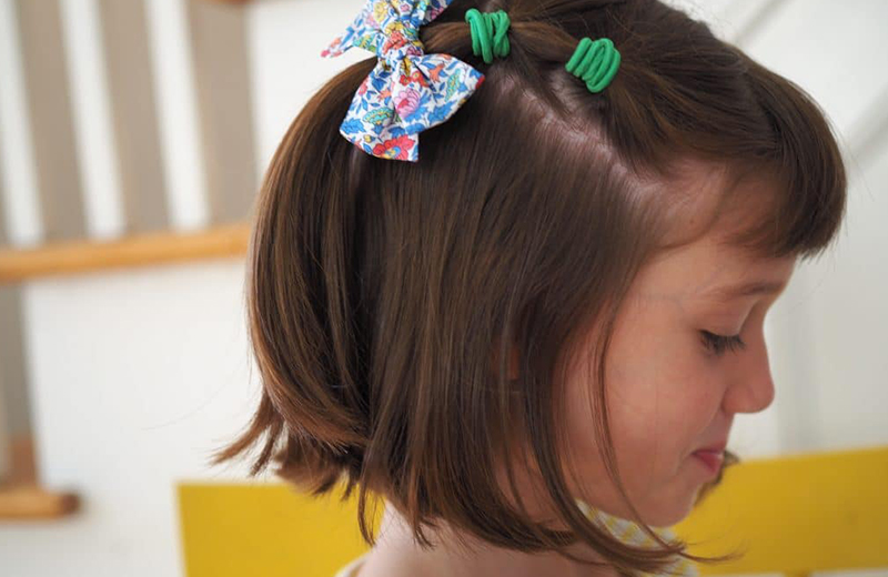 أضيفي القليل من المتعة لشعر طفلتك اذا كان قصيراً وذلك من خلا ربط خصلة واحدة حتى منتصف الرأس ووضع بعد الربطات الملونة أو التي تكون على شكل فراشة.