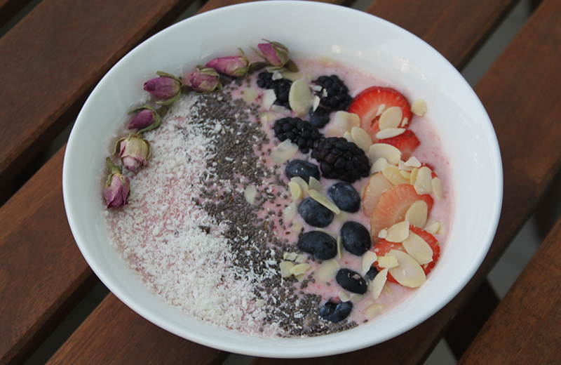 طريقة عمل طبق سموذي الفراولة النباتي