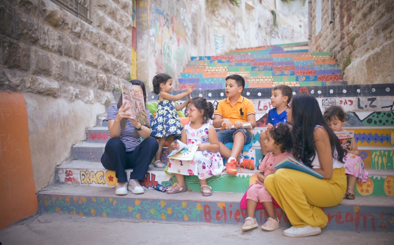 قمت برواية قصة للأطفال بجانب مكتبتنا